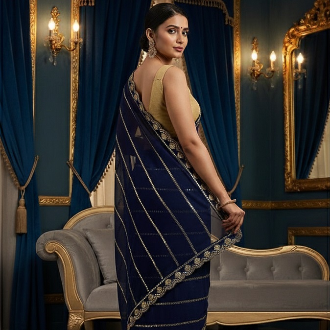 Saree Color : Navy Blue