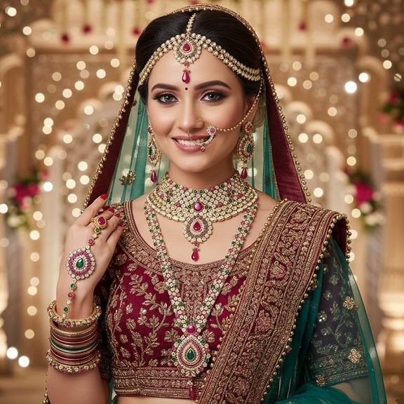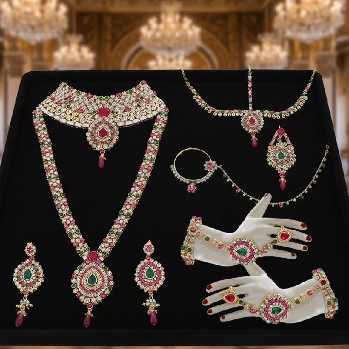 Imperial Bride Magenta Green Jewelry Set (9 Piece)