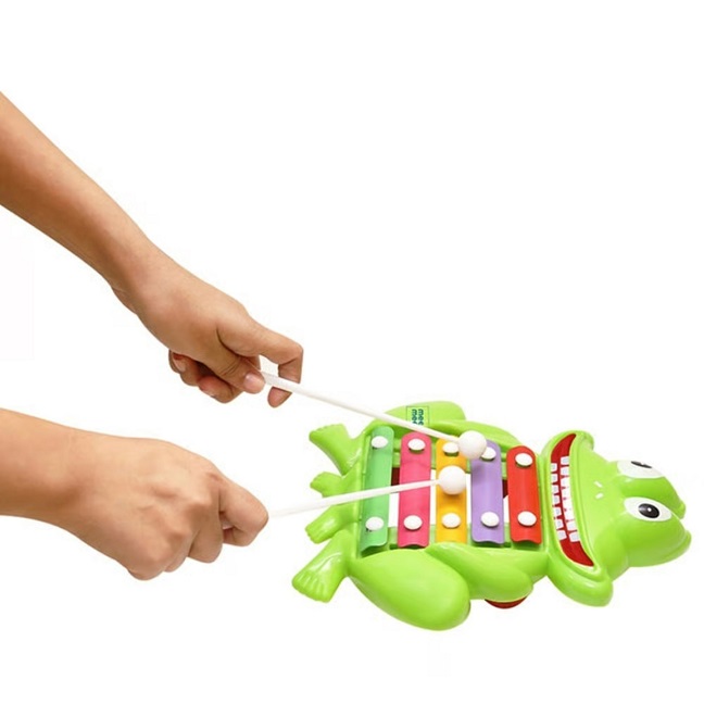 Multiple coloured xylophone plates improve finger flexibility; develop hand-eye coordination and motor skills