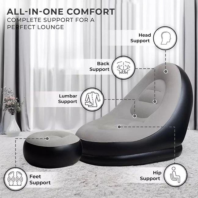 It is very nice choice to enjoy leisure time,you can have a rest,read and watch video, Portable and versatile furniture can be used camping, tailgating, relaxing around the house, and more; inflates in just minutes.