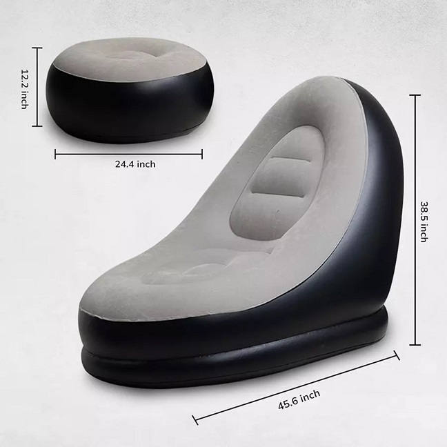 Easy & Quick Inflation Sofa Dorm on the bottom, it only need few minutes to inflate and deflate, non leak design stays a good shape for long time.Come with Electric Air Pump, Material Made of eco-friendly PVC, soft, cosy, environment-friendly, skin-friendly, air-permeable, wear-resistant, stain-resistant and fade-proof.