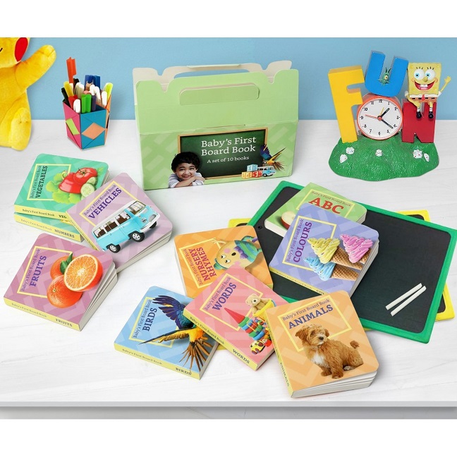 Find your little one a fun and interactive learning companion with Solimo’s Board Books for Kids. This set comprises of 10 multi-coloured picture books which include ABCs, Numbers, Fruits, Colours, Words, Animals, Birds, Vegetables, Vehicles, and Nursery Rhymes. These books are an excellent tool to help your child take their first steps into the realm of language and learning. They will allow them to grasp colours, numbers and other fundamentals.