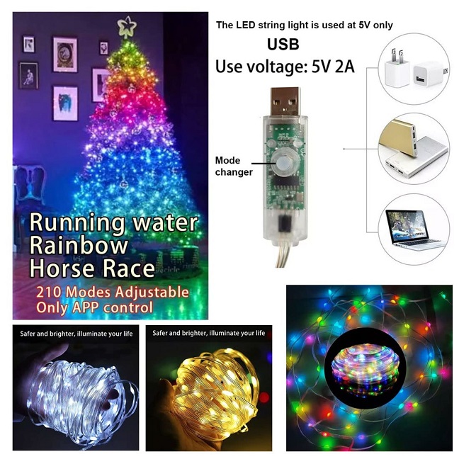10 meter Smart RGB Fairy String Light with Music Sync Smart APP Control work on energy efficient USB 5V USB. It will work on power bank, laptop, computer, or any 5v charger.