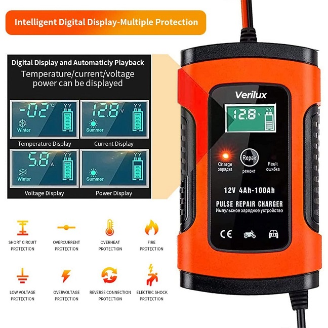 Verilux 5A 12V Fully Automatic Car / Motorcycle Battery Charger / Repairer