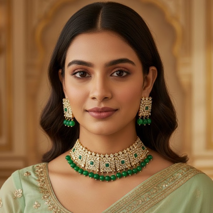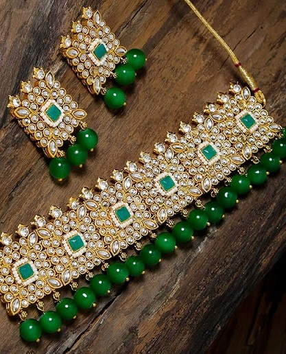 Zamrud Royal Dangling Elegance Choker Necklace Set